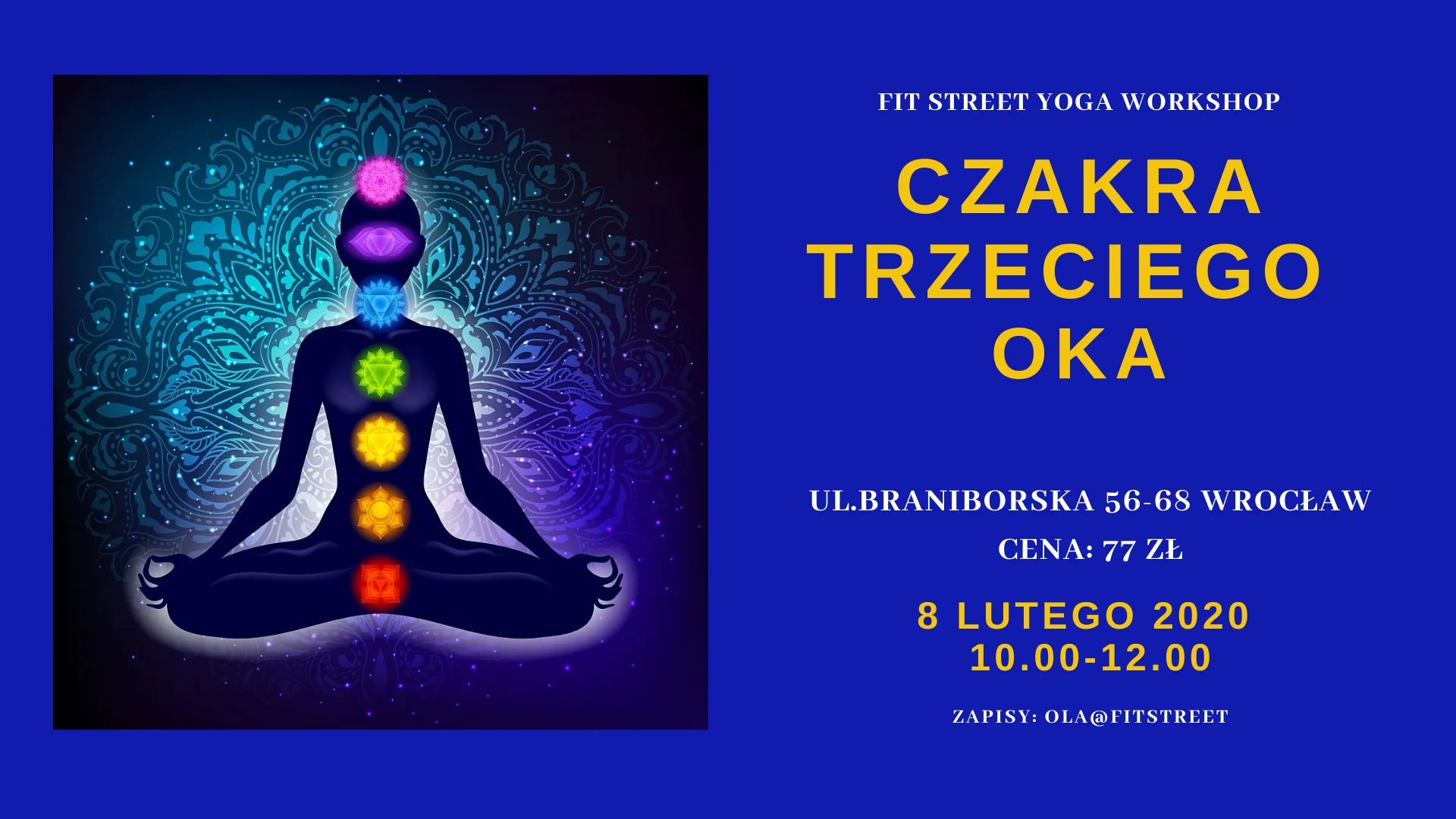 Czyli: Vinyasa Flow w połączeniu czakralnym, asany uwalniające energię czakry trzeciego oka, relaksacja z medytacją + zdrowy poczęstunek)