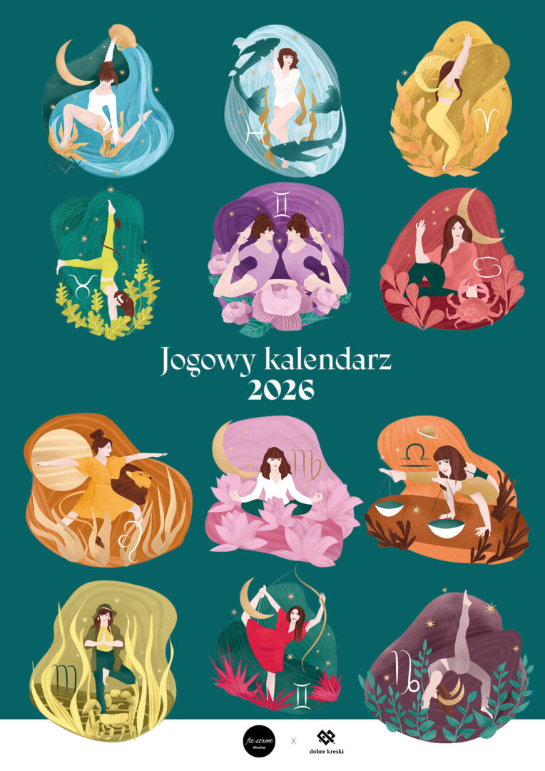 „Jogowy Kalendarz 2026” to wyjątkowa podróż przez 12 miesięcy i 12 znaków zodiaku – każdy z nich prowadzi Cię przez inną asanę, energię i intencję.